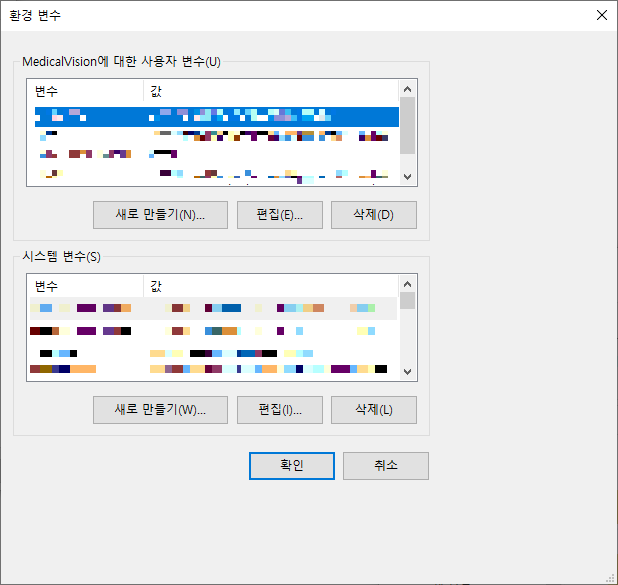 • 변수 값 : 작은/큰 따옴표 없이 입력, 여러 경로 입력 시 세미콜론(;)으로 구분