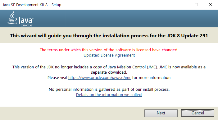 환경변수(PATH, JAVA_HOME)에 Java경로 추가(C:\Program Files\Java\jdk1.8.0_291)는 아래 링크!